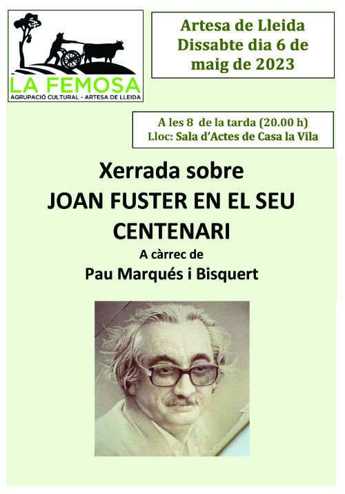Xerrada: “Joan Fuster en el seu centenari”, a càrrec de Pau Marqués i Bisquert.