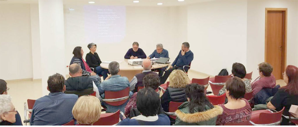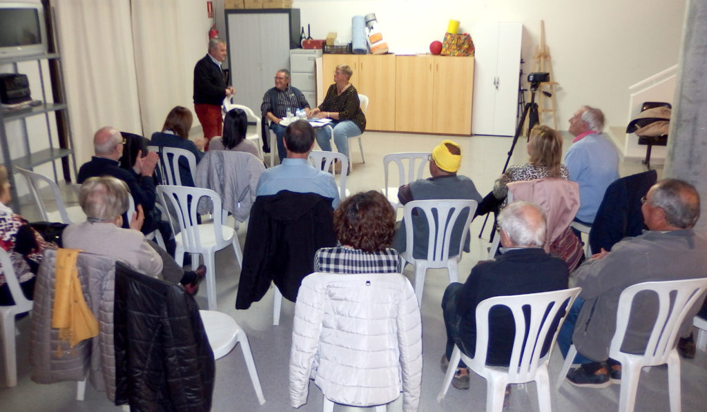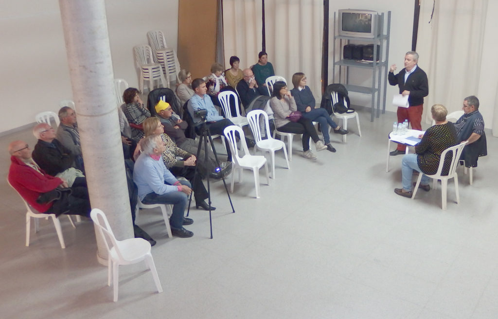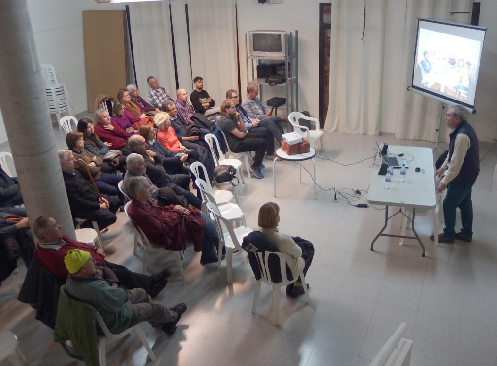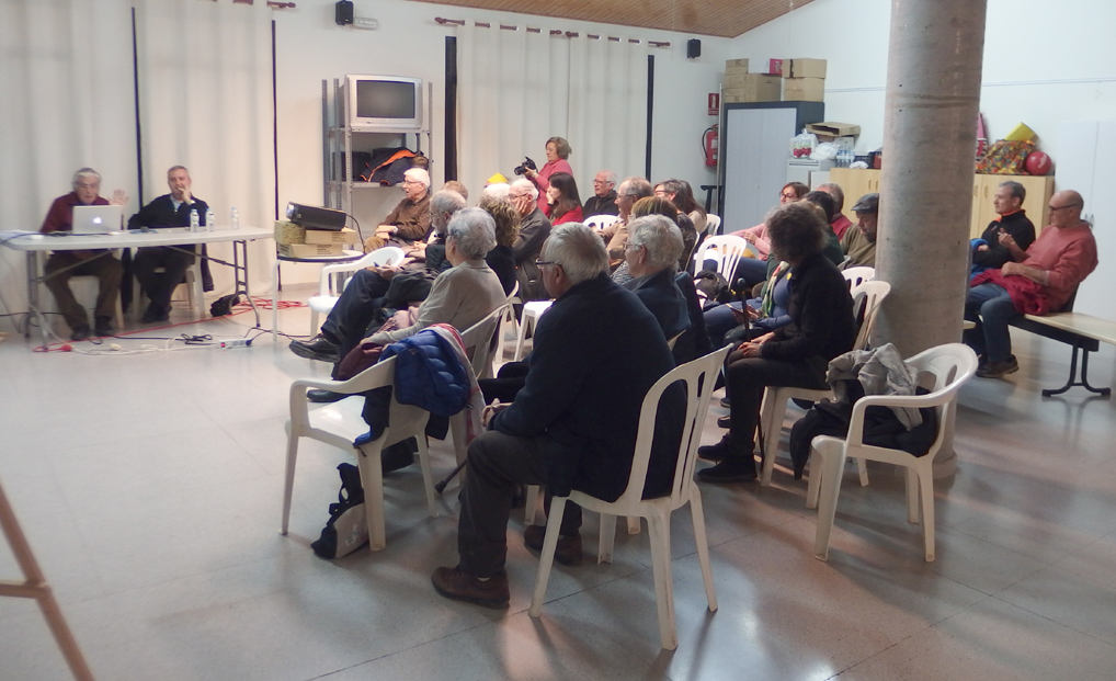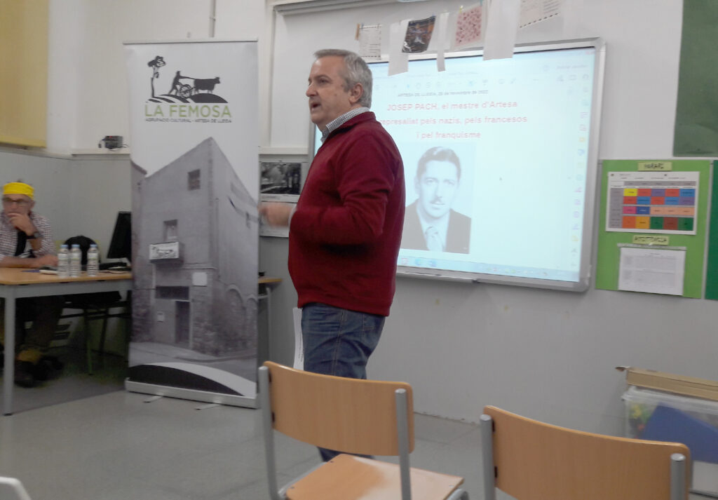 - Imatges del de la conferència “Josep Pach, el mestre d’Artesa represaliat pels nazis, pels francesos i pel franquisme”, a càrrec de Glòria Garcia, Felip Gallart i Rosa Pach, celebrada el 25 de novembre a l’escola Els Til·lers.