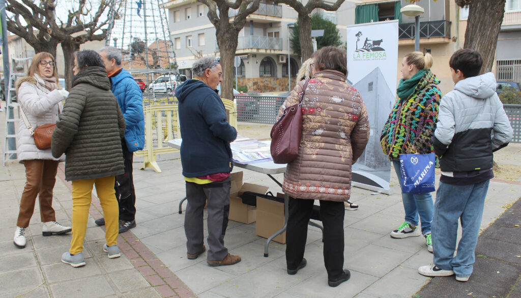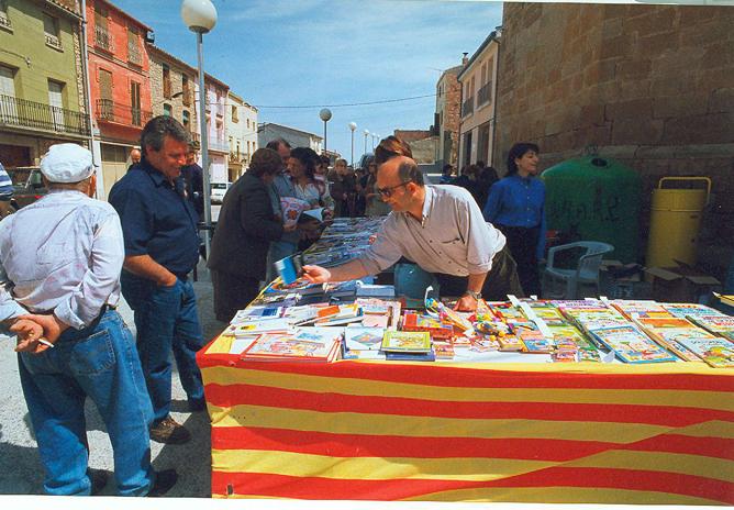 Imatge de la “Parada de llibres editats per l’Agrupació Cultural La Femosa” amb motiu de la Diada de Sant Jordi, davant la seu social de La Femosa.