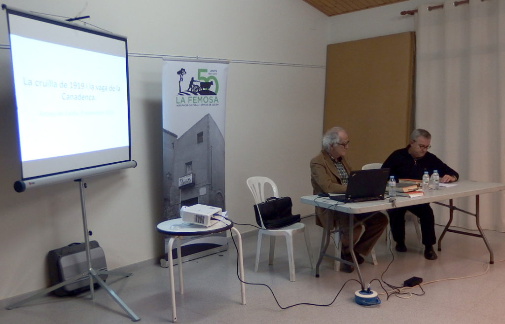 Conferència: La cruïlla de 1919 i la vaga de la Canadenca, a càrrec de Josep Varela i Serra, que va tenir lloc el 8 de novembre de 2019, a 2/4 de 9 del vespre al 1r pis de la Llar de Jubilats, carrer Vileta s/n