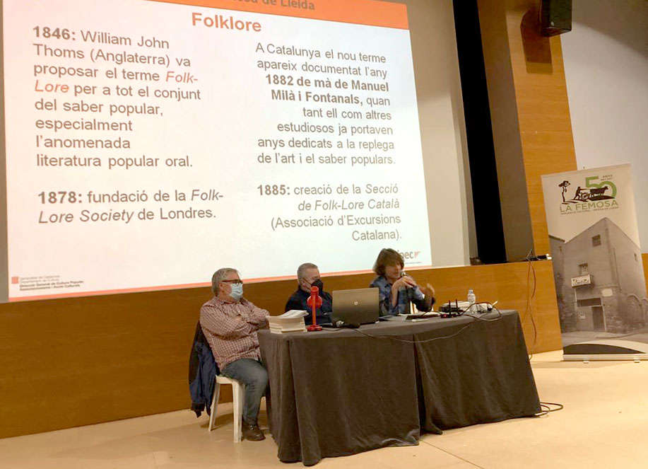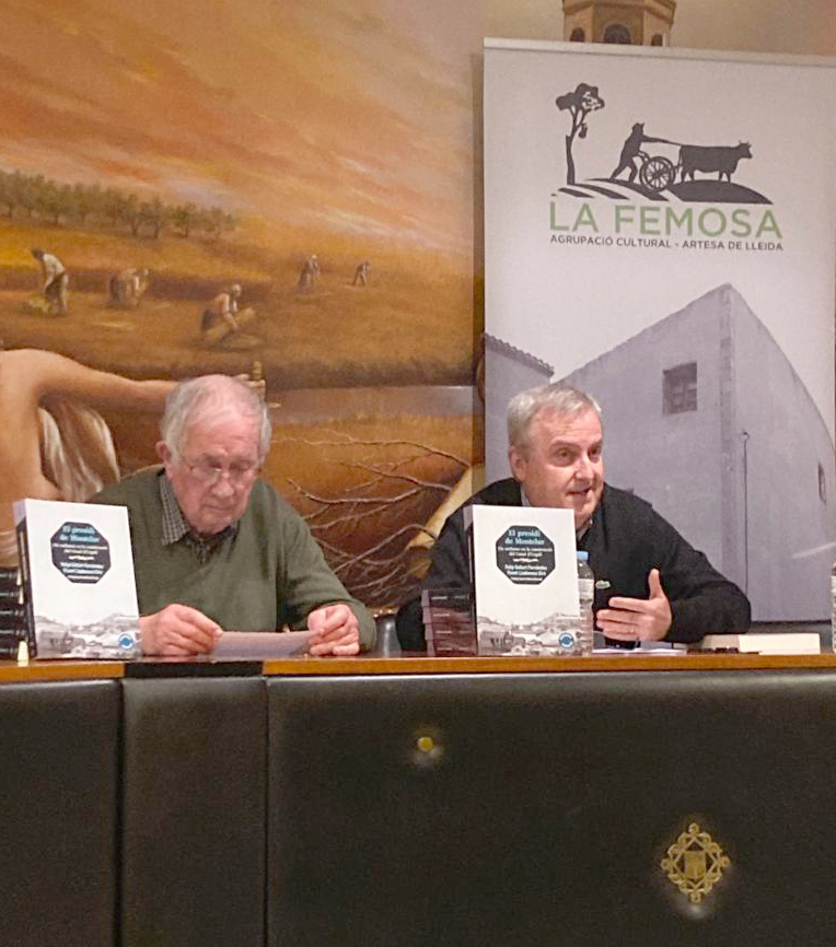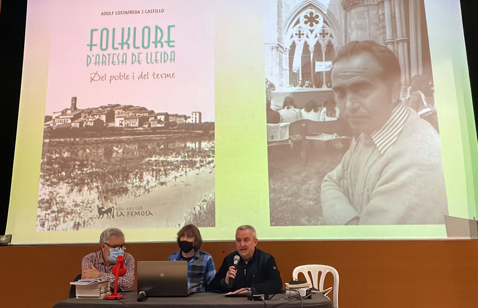 - Imatges de la presentació del llibre “Folklore d’Artesa de Lleida. Del poble i del terme” d’Adolf Costafreda, a càrrec de Rafel Folch Monclús i Felip Gallart Fernàndez, que va tenir lloc el 9 d’abril de 2022 al Teatre Municipal d’Artesa de Lleida.