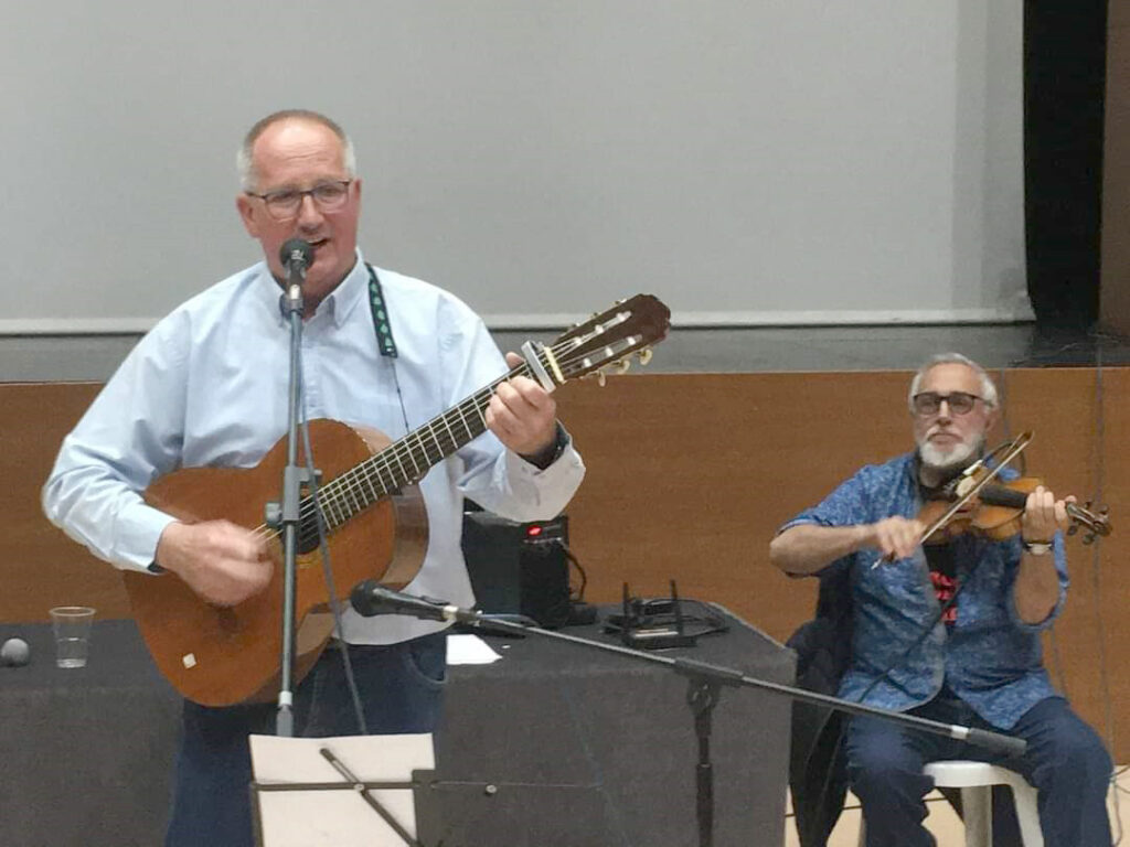 - Imatges del cercavila pels carrers d’Artesa del grup Tradifarra i de la presentació del llibre de Jordi Oró “Cròniques d’un pagès cantautor ”, a càrrec de Felip Gallart i Josep Borrell i del mateix Jordi Oró i de les cançons que va interpretar Jordi Oró acompanyat de Carles Juste Beethoven. Acte celebrat el divendres 19 de maig de 2023 a la sala del Teatre Municipal d’Artesa de Lleida.
