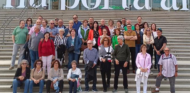 - Participants a la sortida al Teatre Nacional de Catalunya, el 29 d’abril de 2023, per assistir a la representació de l’obra teatral “El temps i els Conway de J.B. Priestley. Dirigida per Àngel Llàcer. Sotida organitzada pel Grup de Lectura de la Femosa.