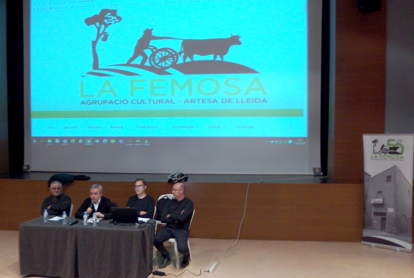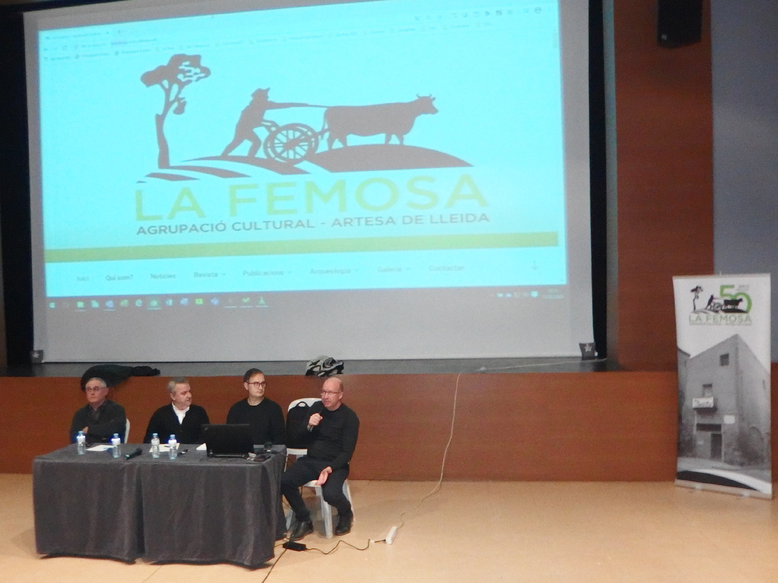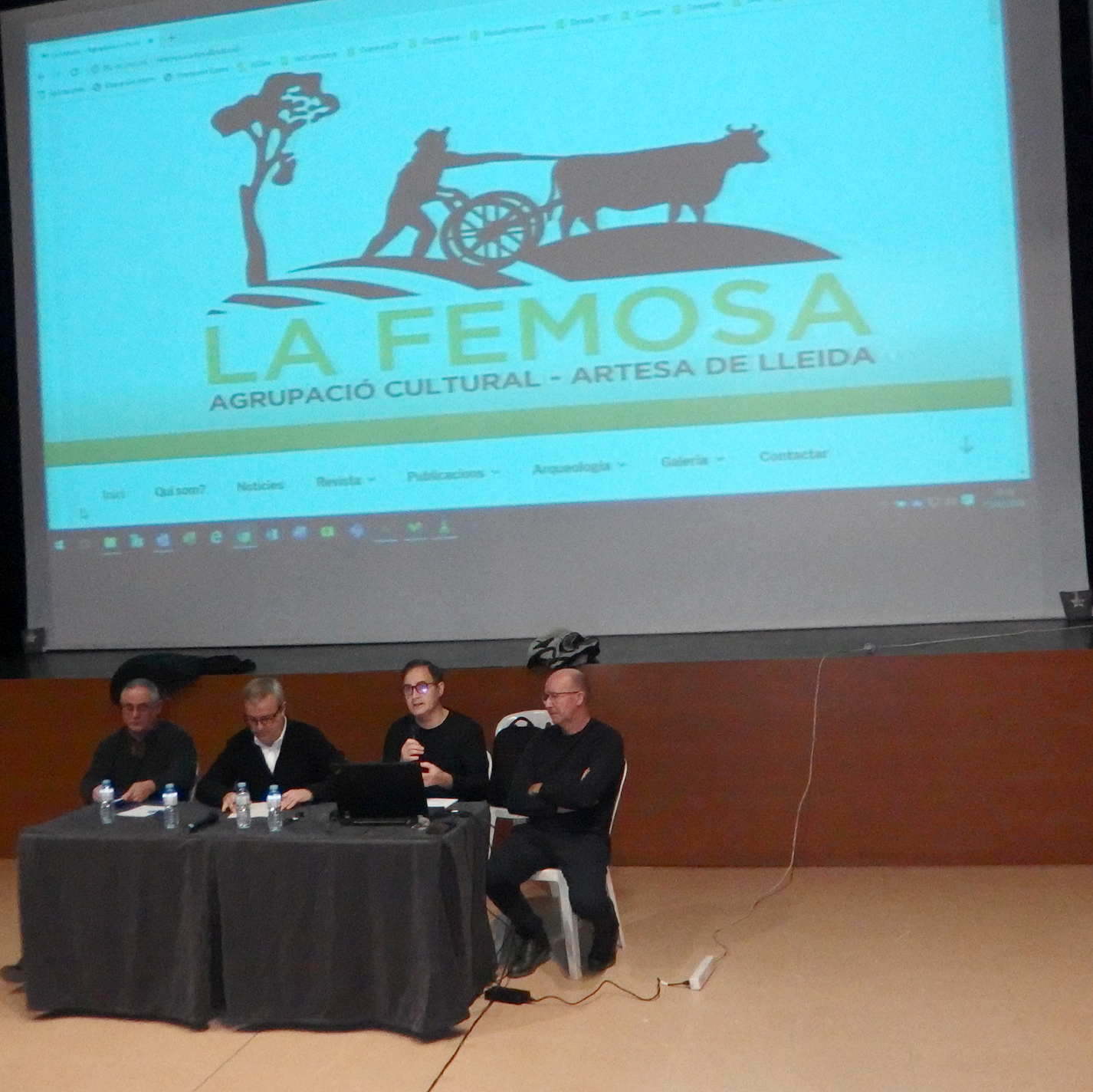 Imatges de la presentació del Blog de l’Agrupació Cultural La Femosa a càrrec de Felip Gallart, Josep Minguet i Ricard Garcia i dels documentals: El cultiu de l’Alfal a Artesa de Lleida i Espumosos Batiste, una indústria d’Artesa de Lleida (1925 – 2008), a càrrec de Felip Gallart i Ricard Batiste.Que va tenir lloc el dissabte dia 15 de febrer de 2020, al Teatre Municipal a les 8 del vespre.