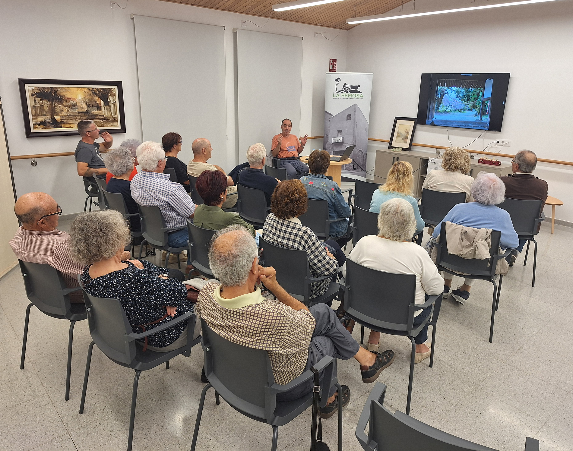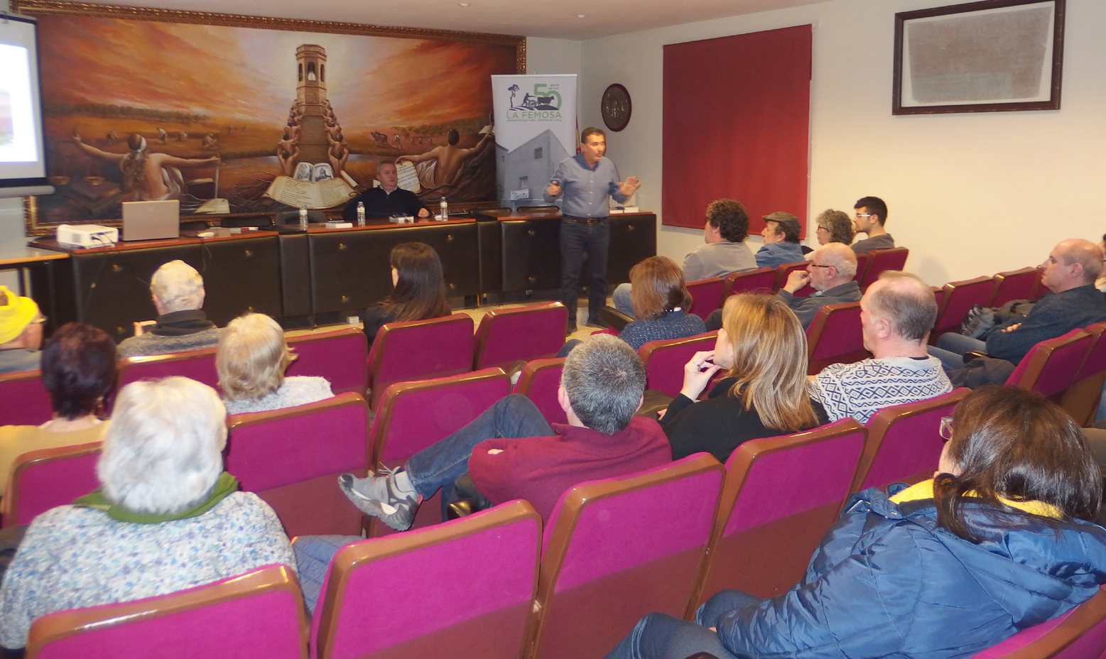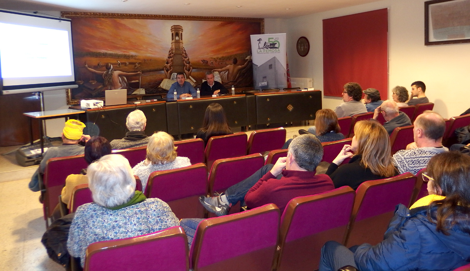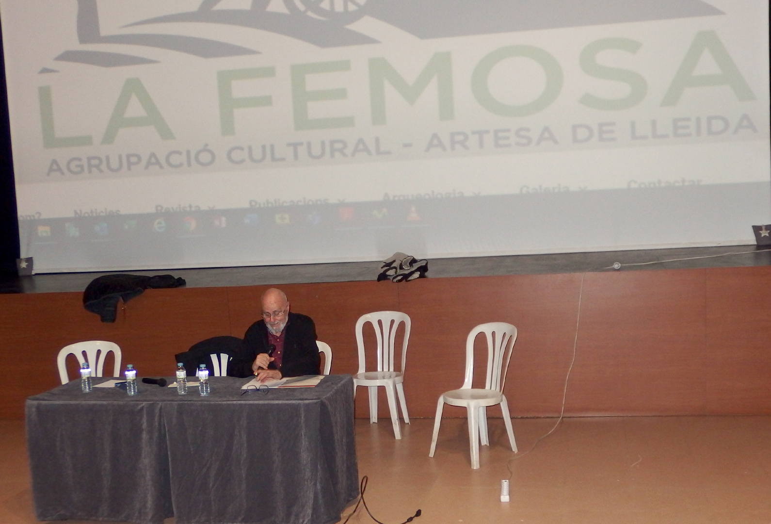 Imatges de la presentació del Blog de l’Agrupació Cultural La Femosa a càrrec de Felip Gallart, Josep Minguet i Ricard Garcia i dels documentals: El cultiu de l’Alfal a Artesa de Lleida i Espumosos Batiste, una indústria d’Artesa de Lleida (1925 – 2008), a càrrec de Felip Gallart i Ricard Batiste.Que va tenir lloc el dissabte dia 15 de febrer de 2020, al Teatre Municipal a les 8 del vespre.