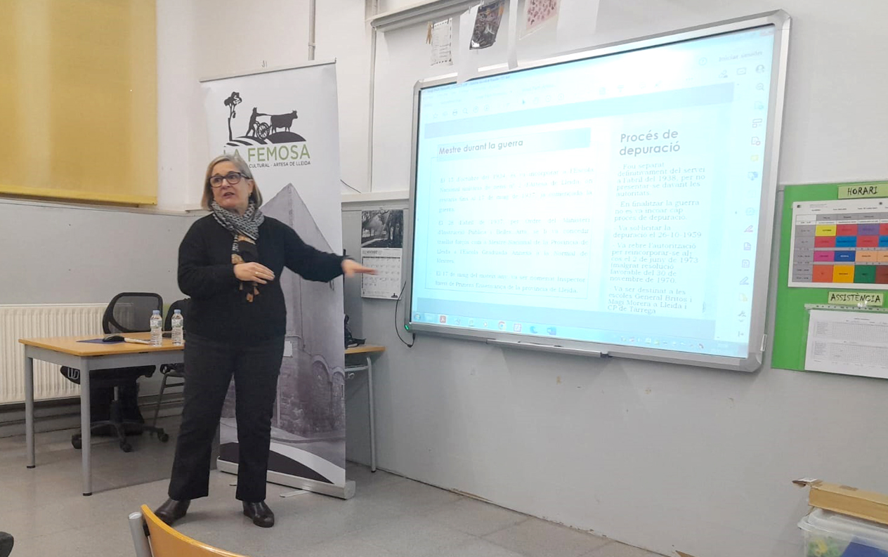 - Imatges del de la conferència “Josep Pach, el mestre d’Artesa represaliat pels nazis, pels francesos i pel franquisme”, a càrrec de Glòria Garcia, Felip Gallart i Rosa Pach, celebrada el 25 de novembre a l’escola Els Til·lers.