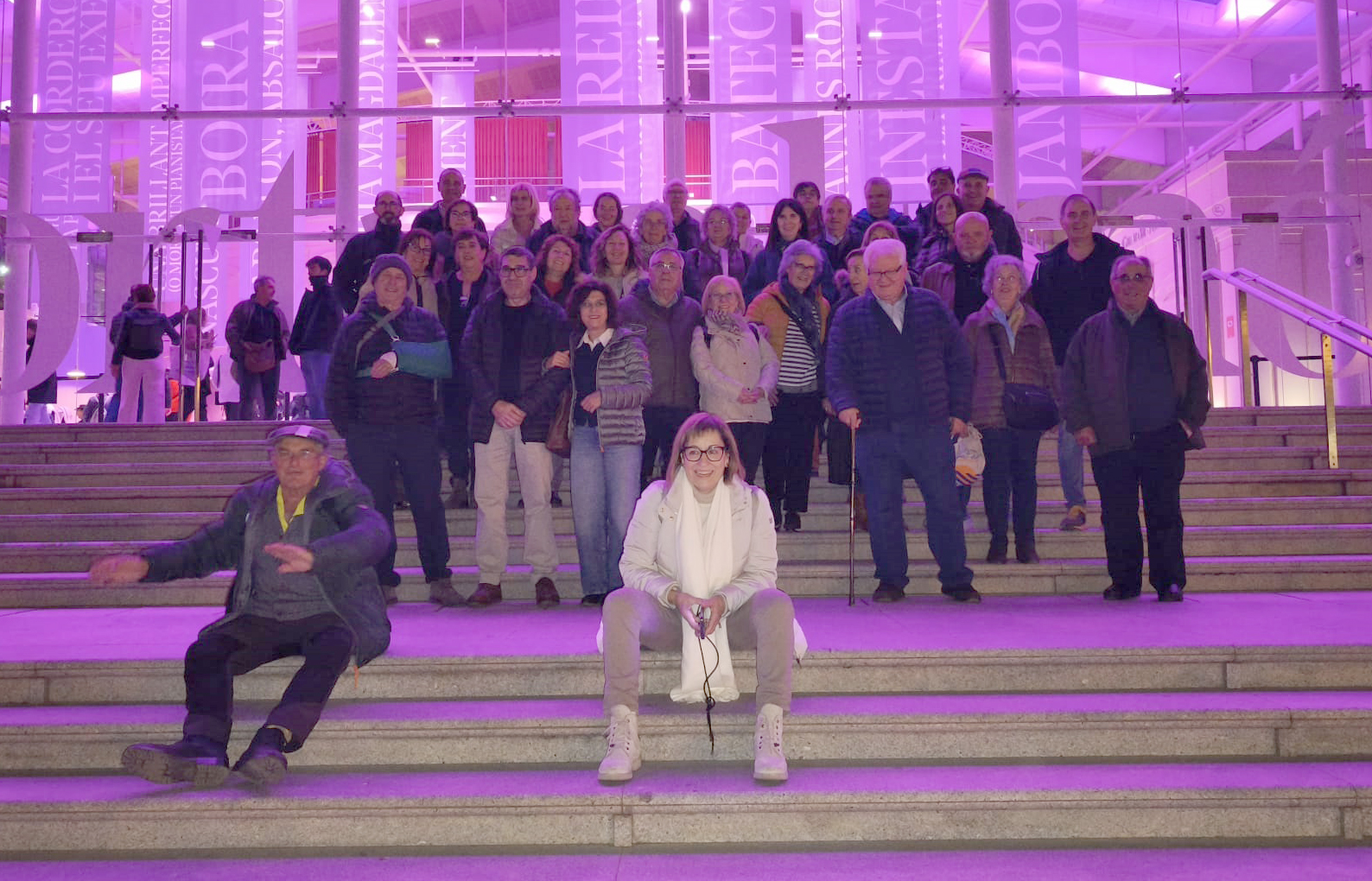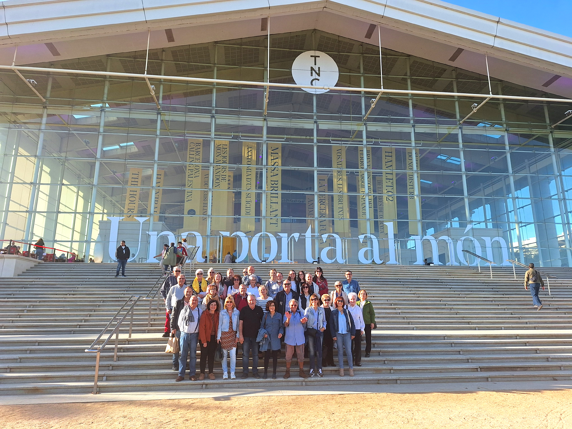 - Participants a la sortida al Teatre Nacional de Catalunya, el 29 d’abril de 2023, per assistir a la representació de l’obra teatral “El temps i els Conway de J.B. Priestley. Dirigida per Àngel Llàcer. Sotida organitzada pel Grup de Lectura de la Femosa.